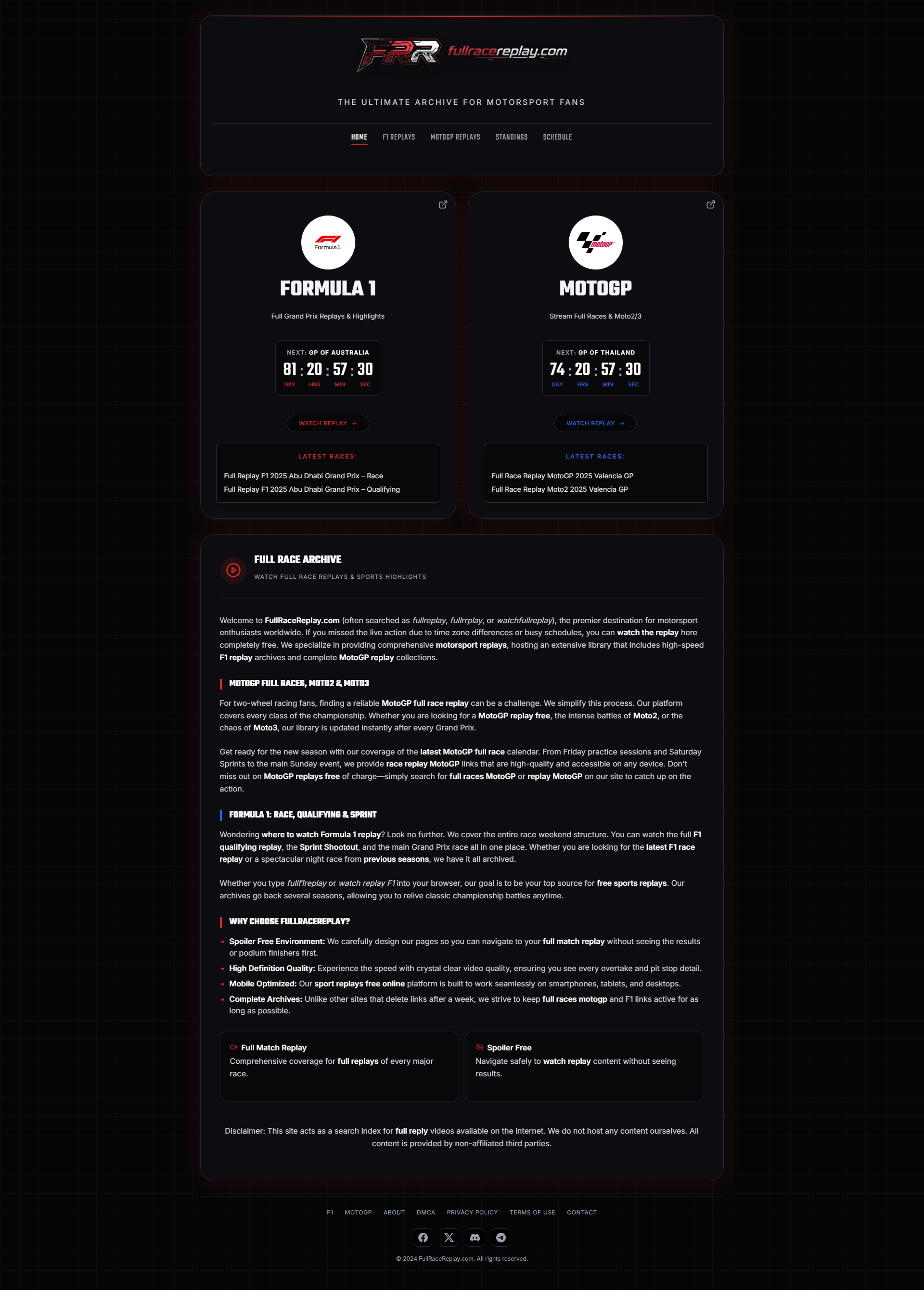 SEO The Ultimate Guide to Streaming F1 and MotoGP Replays: FullRaceReplay vs. WatchFullReplay Compare FullRaceReplay.com and WatchFullReplay.com for catching up on Formula 1 and MotoGP. A detailed review of features, content libraries, and spoiler-free streaming options for motorsport fans battling time zones.